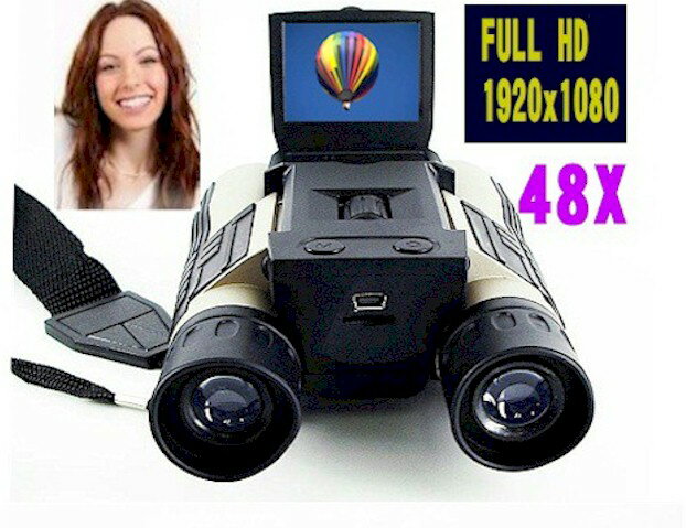 業界初 最小軽量フルハイビジョン録画とデジタル写真撮影、PCカメラ(監視など) も可能になり新登場!! 緊急時やスポーツ鑑賞、旅行に最適!! マルチコーティングレンズ搭載双眼鏡と高性能デジタルカメラがドッキングして新登場!! 光学12倍、デジタル4倍の最大48倍まで撮影可能で業界初※音声付きフルハイビジョンAVI録画可能の双眼鏡です。
