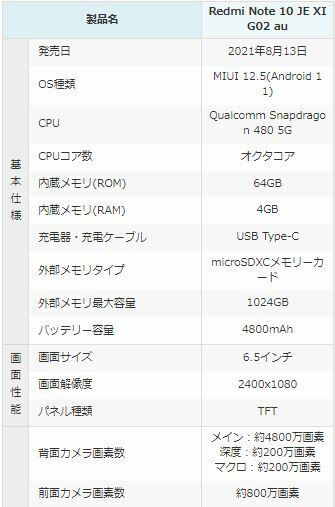 SIMフリー XIAOMI Redmi Note 10 JE XIG02