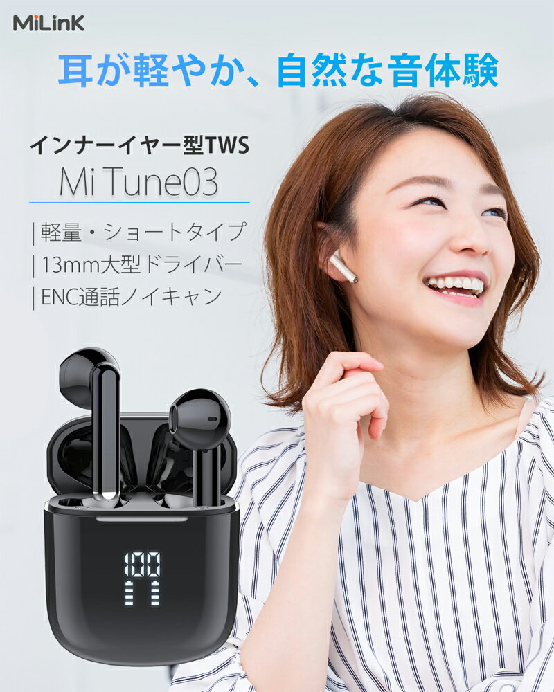 Mi Tune03 ワイヤレスイヤホン bluetooth 5.4 インナーイヤー バッテリー 残量表示 ENC ノイズキャンセリング 低遅延 Hi-Fi 高音質 5時間音楽再生 超軽量 小型 完全 ワイヤレス ブルートゥース イヤホン マイク付き 片耳 両耳 長時間 通話 防水 スポーツ android iphone 対応