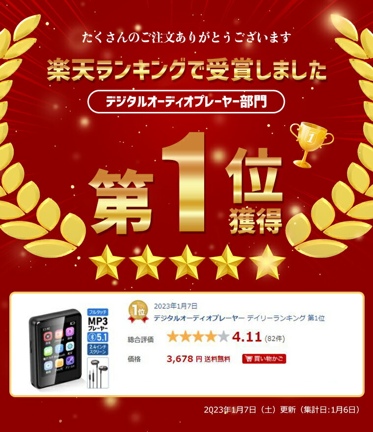 「フルタッチ・2.4インチ」mp3プレーヤー bluetooth 5.1 多機能 音楽プレーヤー フルタッチ スピーカー内蔵 4GB内蔵 128GBまで拡張可 技適認証/PSE認証 HiFi高音質 超軽量 語学 学習 ラジオ IPSタッチバネル