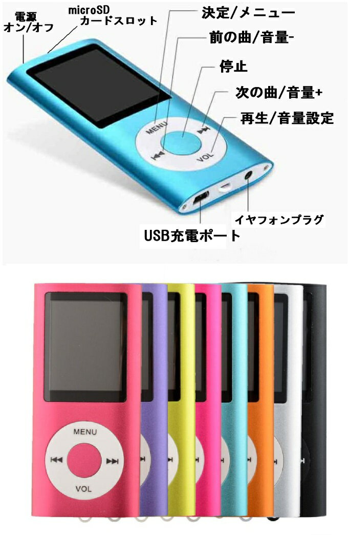 MP3プレーヤー スリムタイプ 《ブラック》 本体のみ AMV動画対応 録音 FMラジオ デジタルオーディオプレーヤー[定形外郵便、送料無料、代引不可]