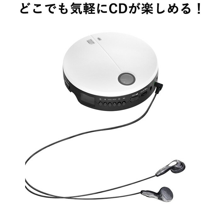 【即納】ベルソス 2電源対応 ポータブルCDプレーヤー イヤホン付属 音飛び防止機能付 VS-PCD01WB ホワイト×ブラック【送料無料】【KK9N0D18P】