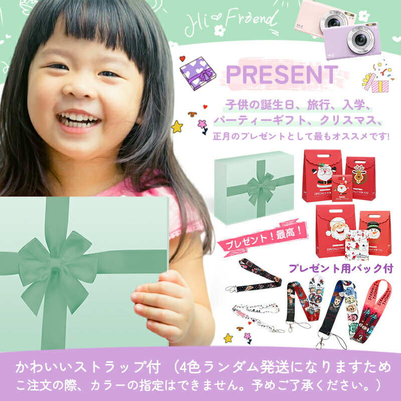 部分当日発送\正規品!/デジタルカメラ 4800万画素 デジタルカメラ 4k コンパクトデジタルカメラ 2.7K録画 2.88インチ大画面 子供用 トイカメラキッズカメラ 16倍ズーム 子どもカメラ1080P録画 キッズデジカメ 32GB クリスマス小学生 女の子 男の子 プレゼント