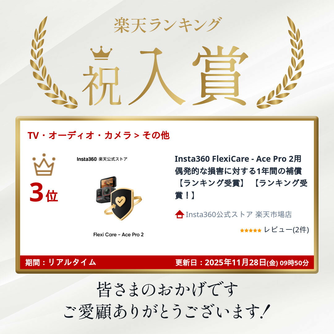 Insta360 FlexiCare - Ace Pro 2用 偶発的な損害に対する1年間の補償 【ランキング受賞】 【ランキング受賞!】