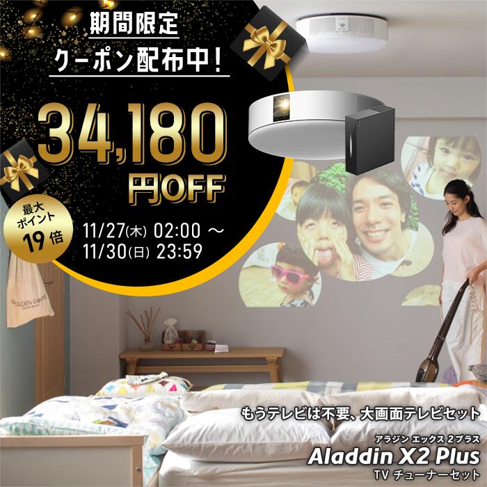 【期間限定34,180円OFFクーポン発行中】Aladdin X2 Plus 推奨テレビチューナーセット アラジン エックス2 プラス もう、テレビは不要 プロジェクター売上No.1 短焦点 LEDシーリングライト スピーカー フルHD 天井 照明 ホームシアター 映画 XIT-AIR120CW