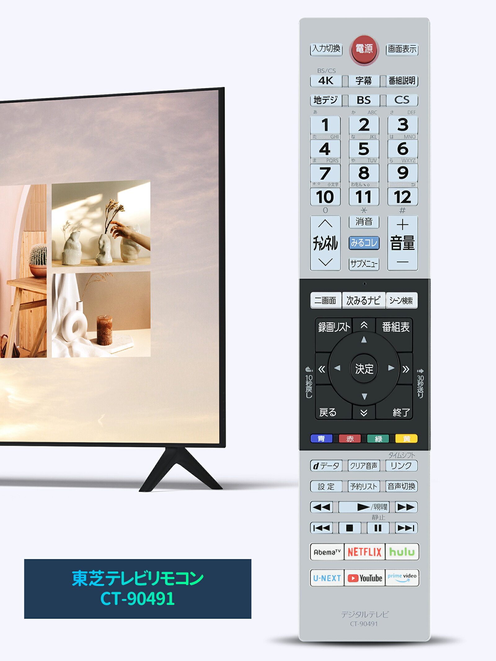 東芝/レグザ専用の汎用テレビリモコン!設定せずに電池を入れるだけですぐに使用可能!
