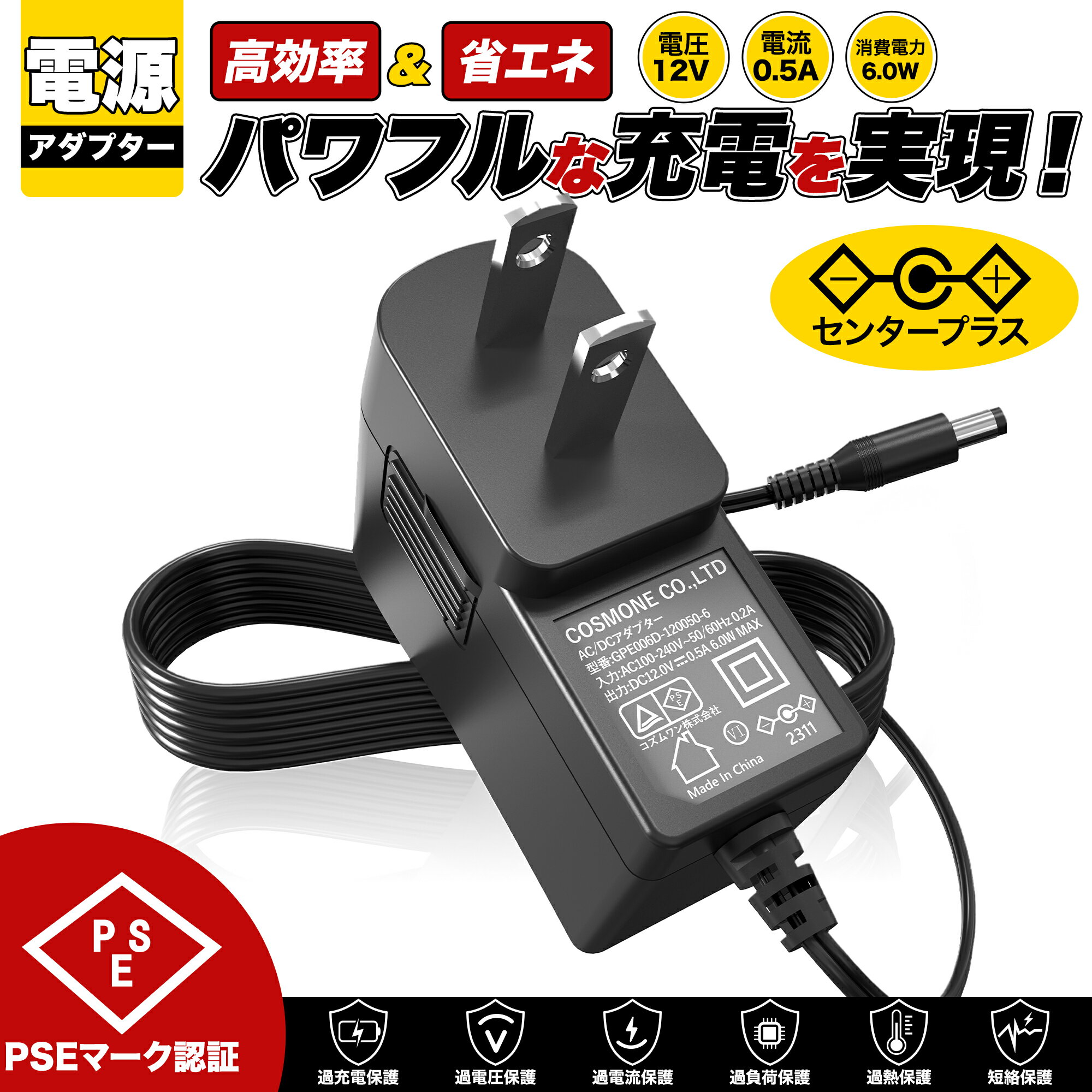 汎用スイッチング式ACアダプター 12V 0.5A 最大出力6W PSE取得品 出力プラグ外径5.5mm(内径2.1mm) 1年保証付 SUCCUL